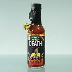 ブレアー社の名品、デスソースシリーズ。(写真はデスソースNo,2の辛さを誇るアフターデスソース)